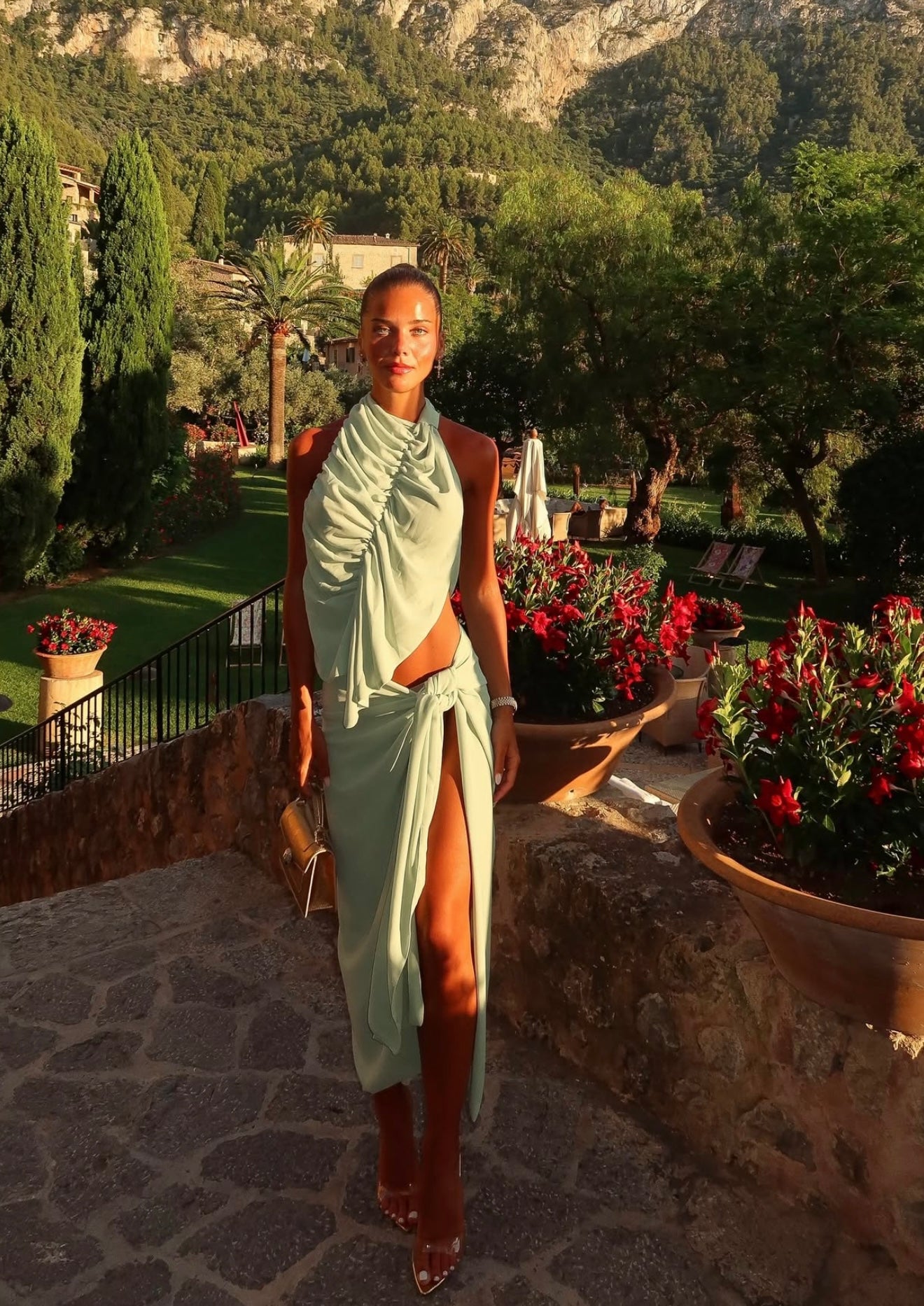 A piece designed to captivate, the Bobbies Halter Top by Koster Kulture embodies effortless sophistication with a touch of modern romance. Crafted in a soft pistachio green hue, she exudes quiet opulence with meticulously hand-tacked draping and an elegant asymmetric hemline that cascades gracefully across the body creating ethereal movement. An open back design is framed by an adjustable halter neck tie for a customisable fit. Perfect for evening elegance or refined daytime styling, Bobbies is a timeless wardrobe statement.